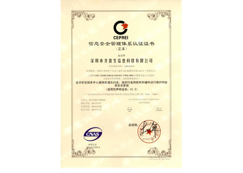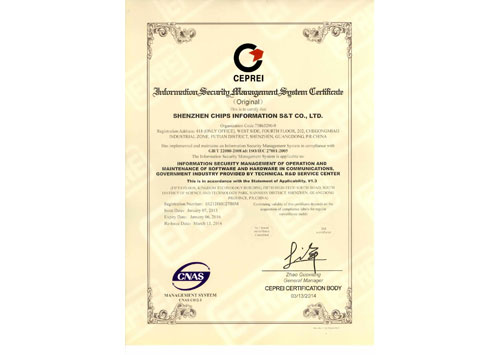 • 信息安全管理體系認證證書(正本)